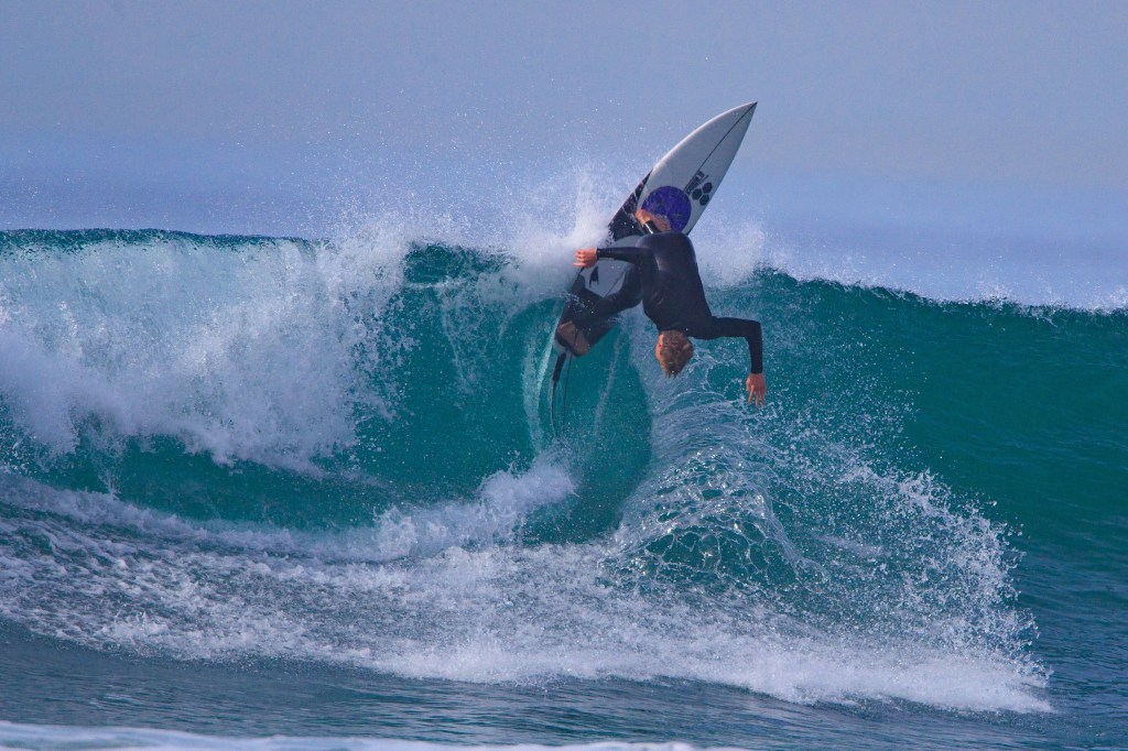By middle distance, I am referring to a shot that is close enough to reveal the details of the surfer’s movement, but pulled back far enough to see where the surfer has been or where they are headed.