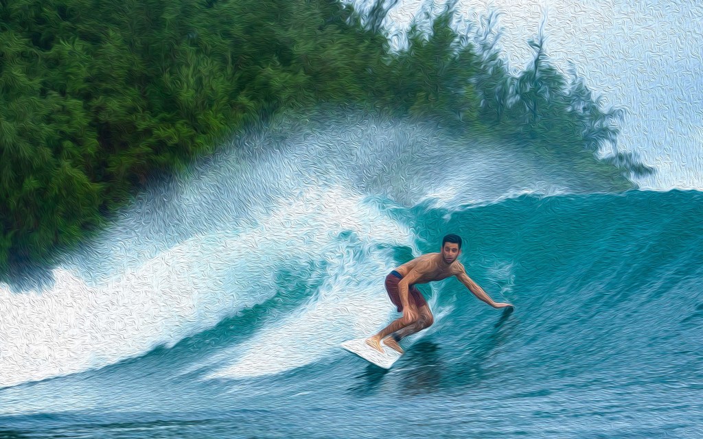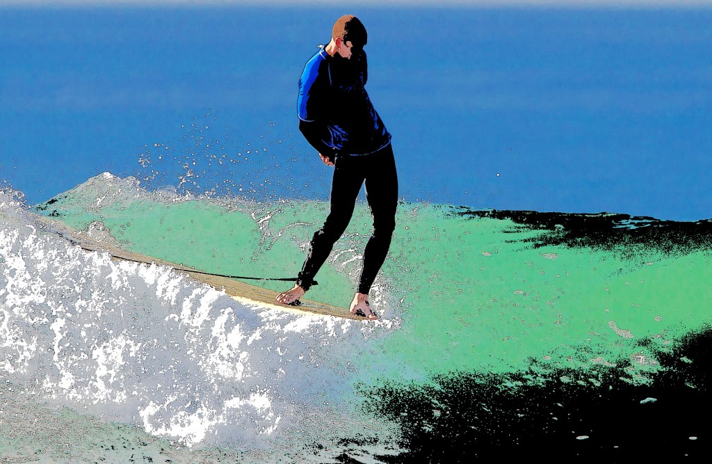 With tens of thousands of surfing images stored on my hard drives, I realized that I have an incredible source of material to play around with (notice I didn’t say “work”). Photoshop opens the door to a wealth of approaches to making whimsical, wacky, or cool images from your surf photography. Let me show you some examples…