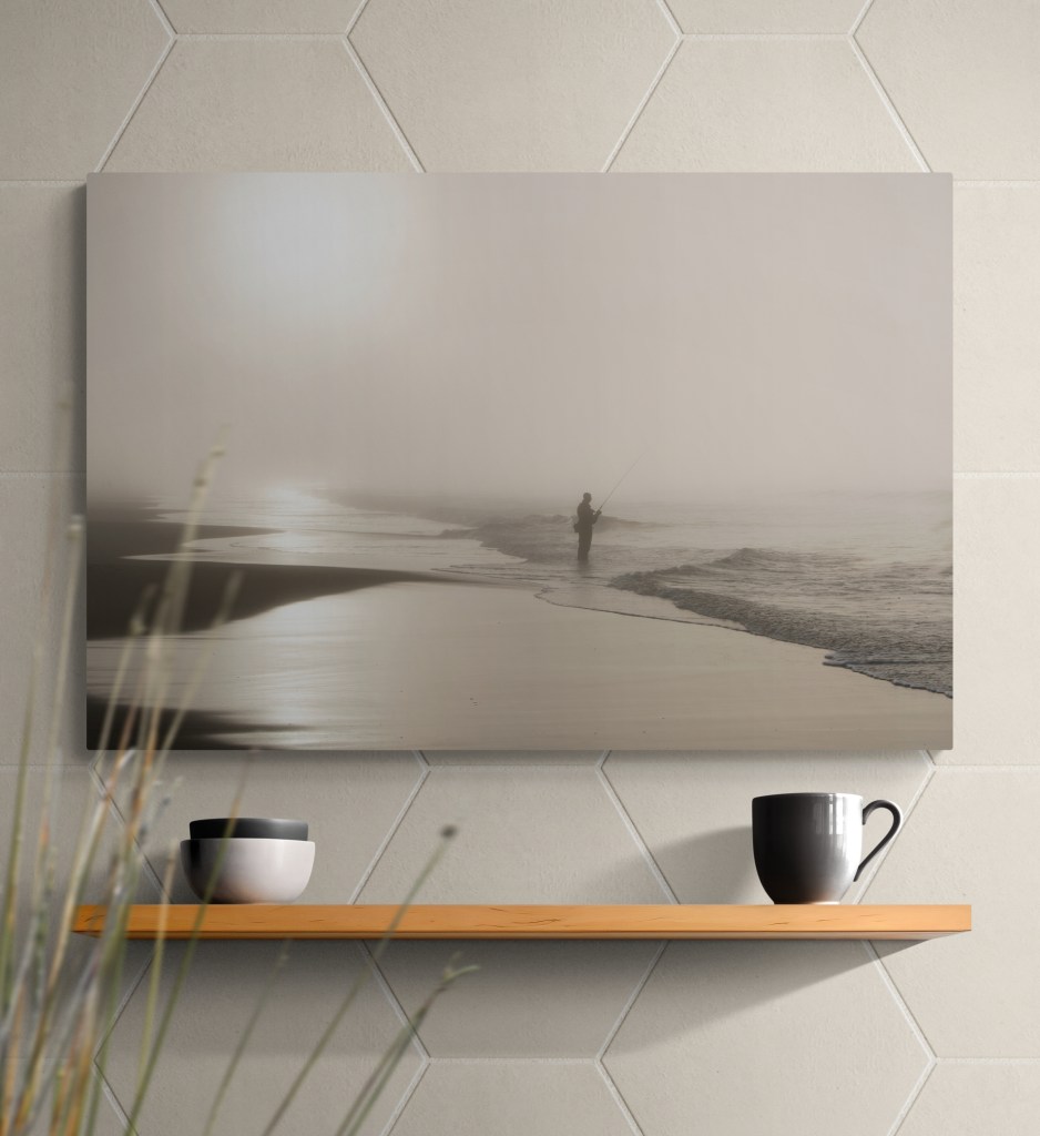 When the right image for the space is found, we then discuss medium. I print on metal, glass, wood, and fine art paper. Each has its advantages and each fits better in different spaces. I like to have samples on hand to show in person or on a zoom call so my clients can really understand the subtle differences.